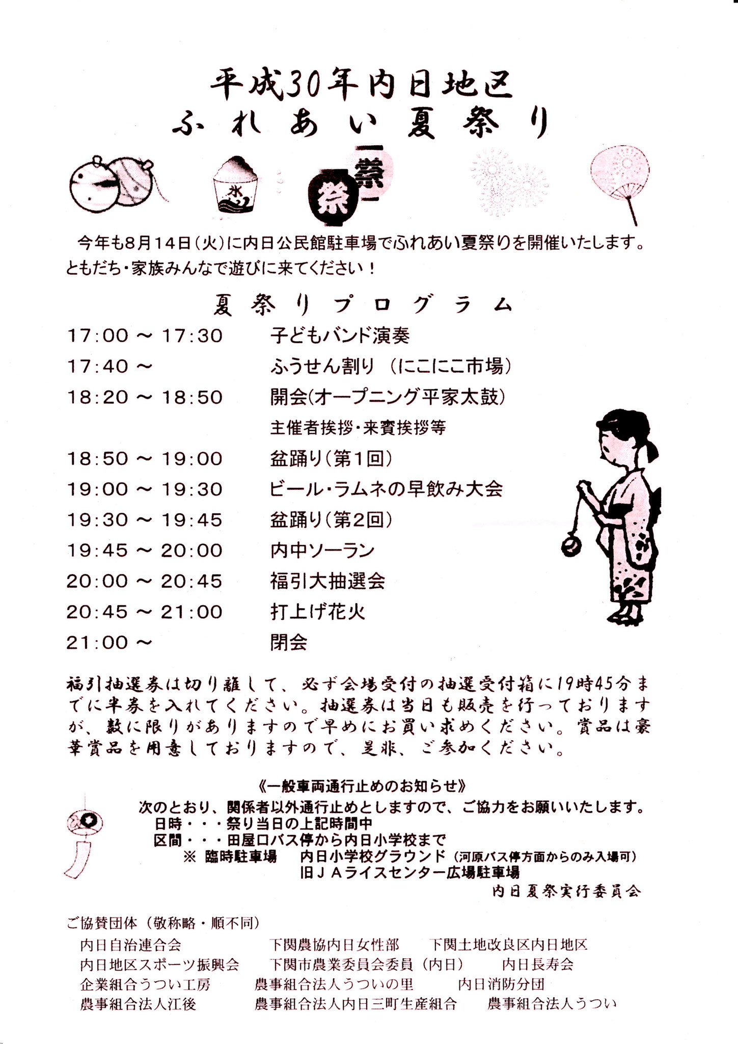 お知らせ 内日ふれあい夏祭りが開催されます - 内日地区まちづくり協議会。