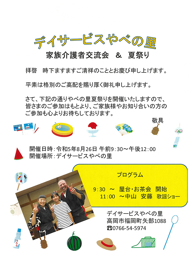 夏祭りのご案内デイサービス やべの里。