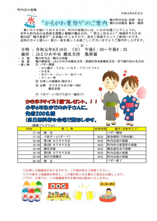 令和2年度 美里あいら夏祭り中止のお知らせ - かのや市商工会 吾平支所。