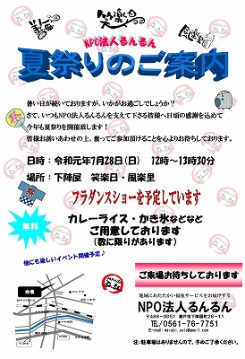 夏祭りのご案内NPO法人るんるん。