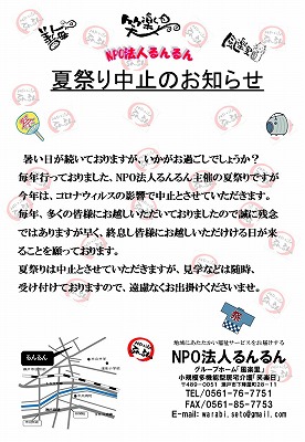 夏祭り中止のお知らせ 下陣屋NPO法人るんるん。