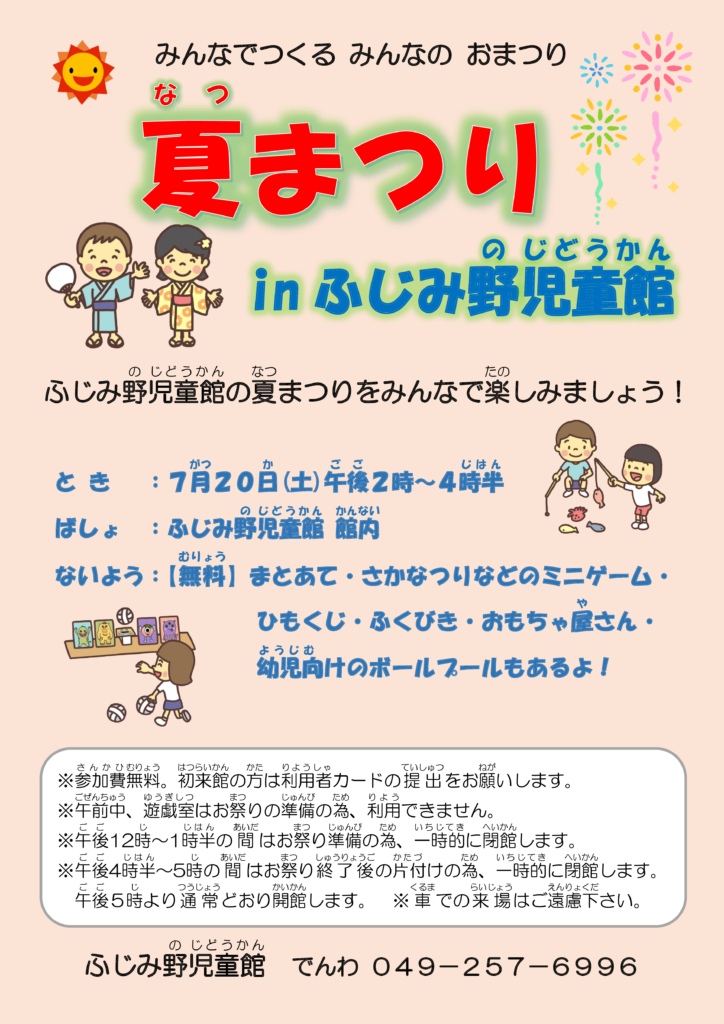 夏まつりinふじみ野児童館のお知らせ – ふじみ野児童館。