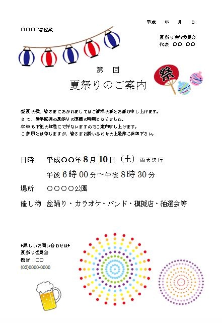 ワード 夏祭りの案内テンプレート 雛形無料イラスト素材素材ラボ。