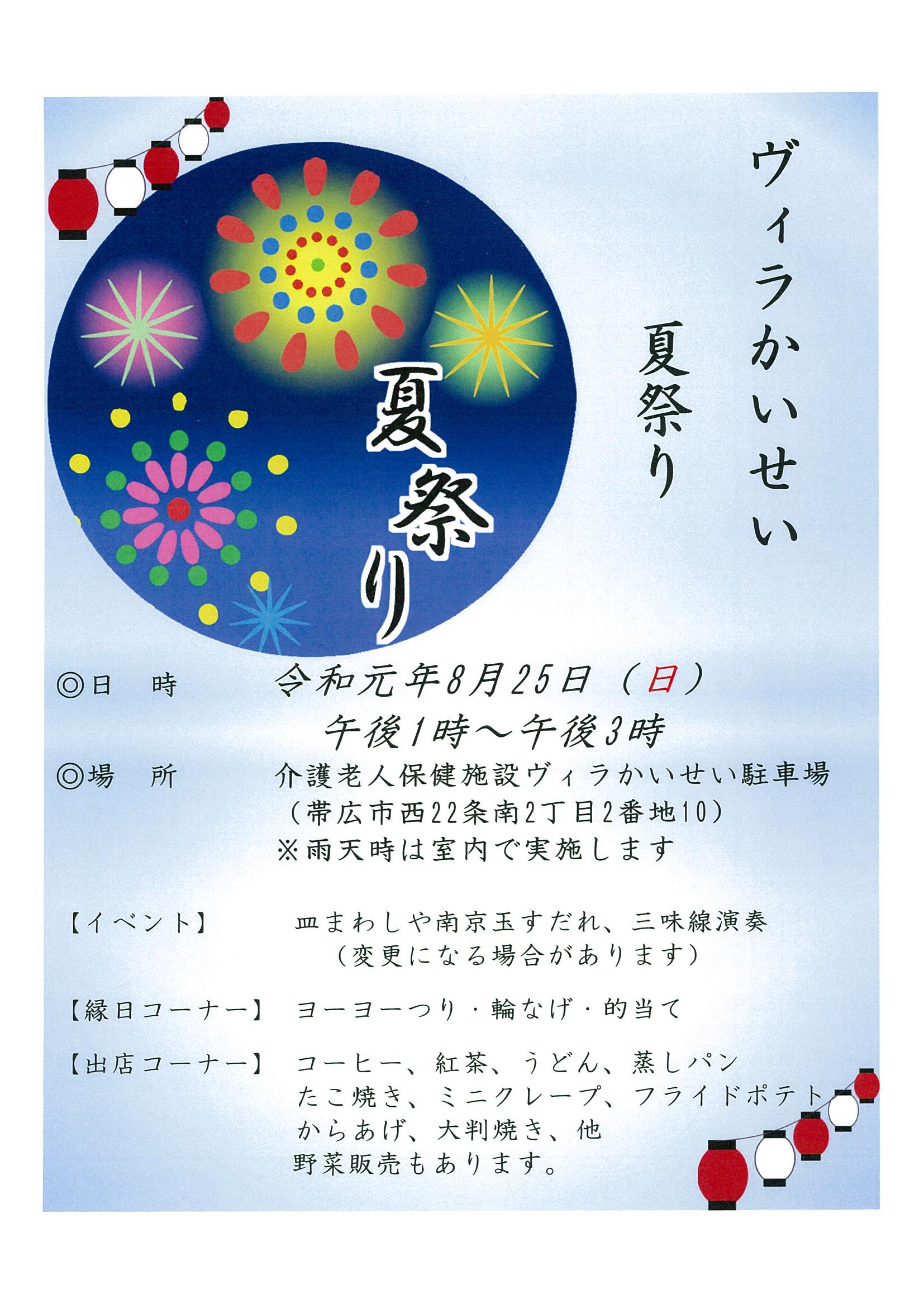8月の夏祭りのお知らせ - 特別養護老人ホーム ガーデンハウス桜ヶ丘・グループホーム ガーデンハウス忠元 社会福祉法人 林の森。