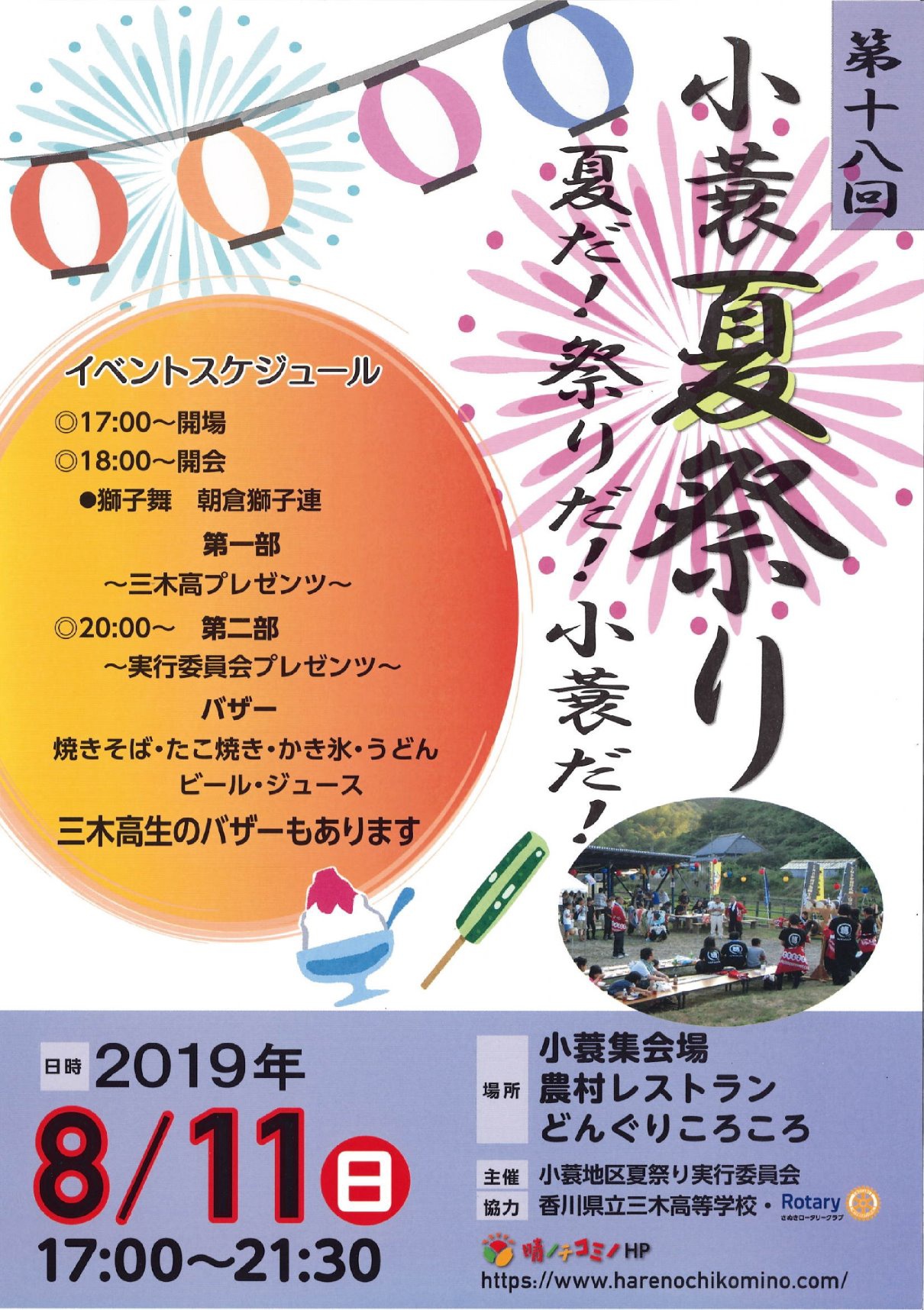 第18回小蓑夏祭りのご案内お知らせ晴ノチコミノ。