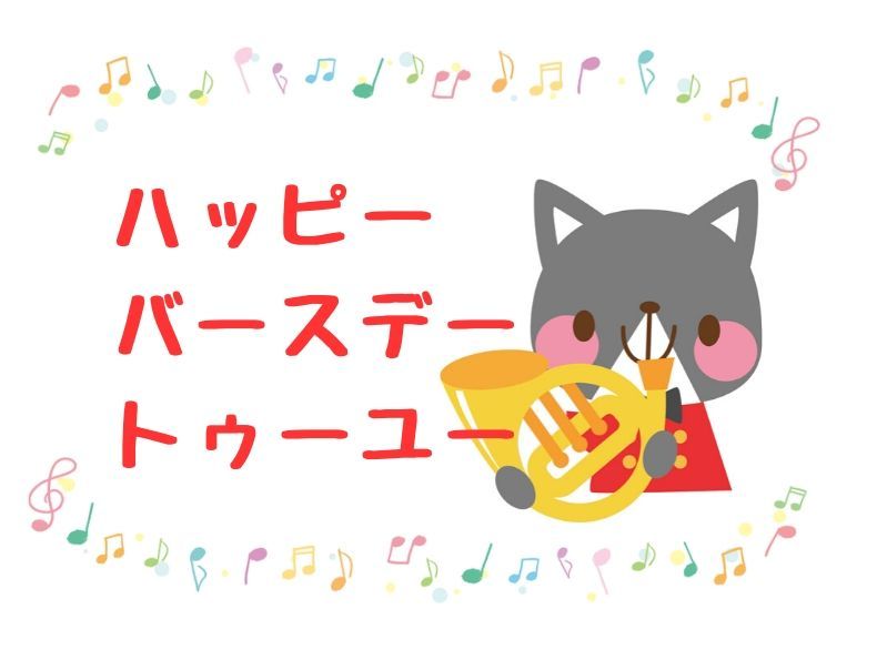 ハッピーバスデートゥーユー 無料ラインスタンプ「誕生日 猫 ホルン」無料ラインスタンプ。