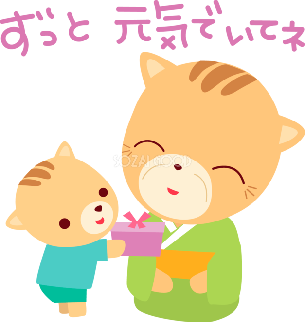 猫 敬老の日かわいい動物無料イラスト81026素材Good。