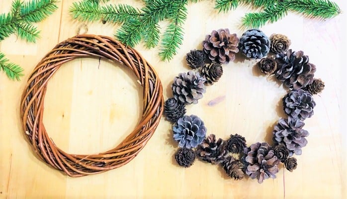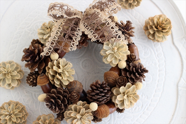 松ぼっくりで作るクリスマスリースの楽しみ方。