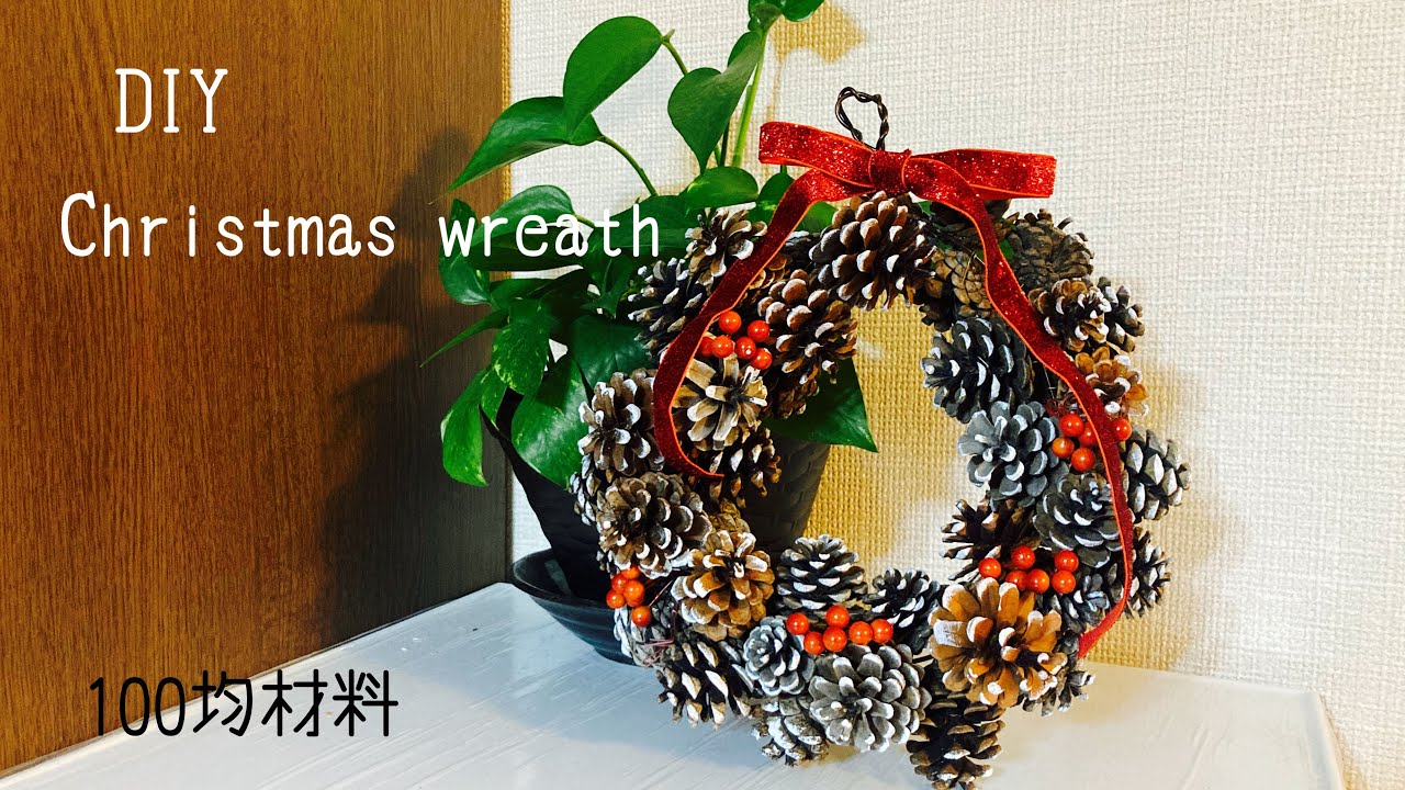 松ぼっくりでリース作り『100均diy』How to make a christmas wreath。