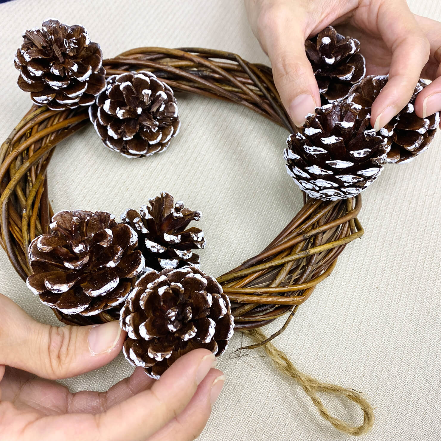 お正月工作!松ぼっくりを使ったお正月リースの作り方 - できルンです。