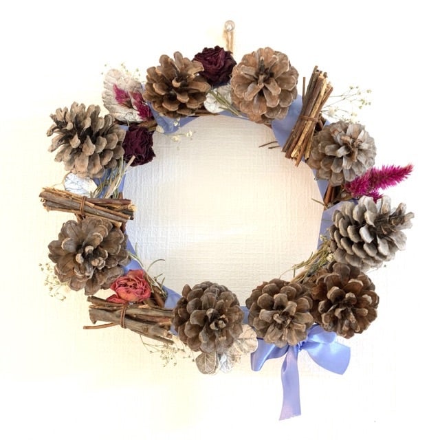 松ぼっくり&ドライフラワーで!かわいいリースの作り方横浜市港北区綱島ハンドメイドサロン♡Atelier Michelle。
