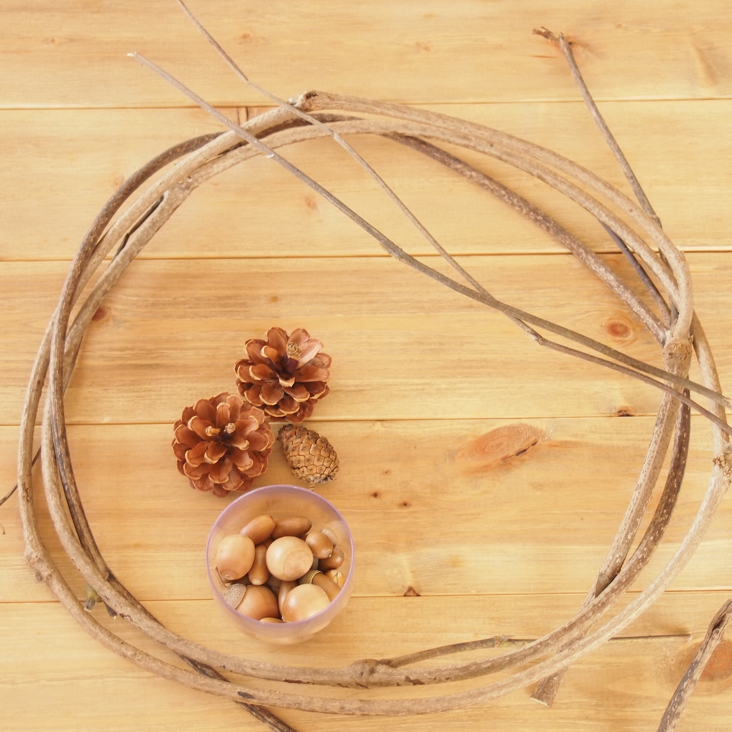 秋リースの作り方 100均造花と松ぼっくりと木の実で簡単手作り。