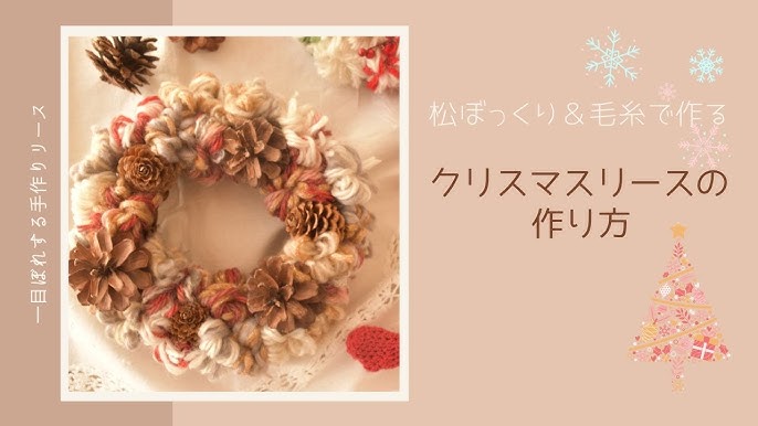 松ぼっくりも相性抜群!毛糸のモフモフクリスマスリースの作り方。