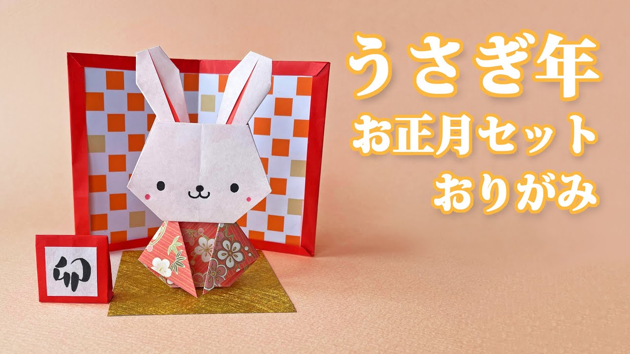 干支の折り紙 卯年あいさつうさぎお正月セットの折り方音声解説付☆Origami rabbit figurine tutorial たつくり。