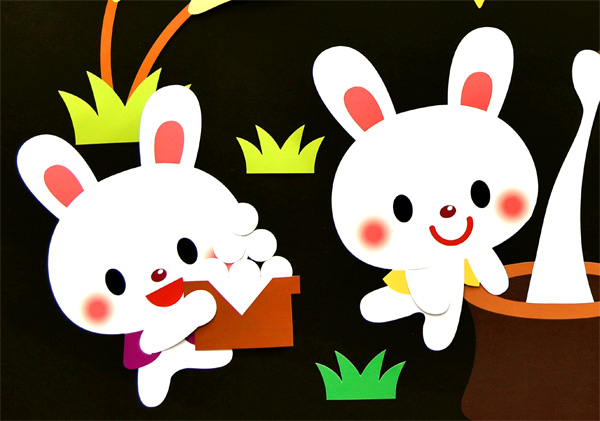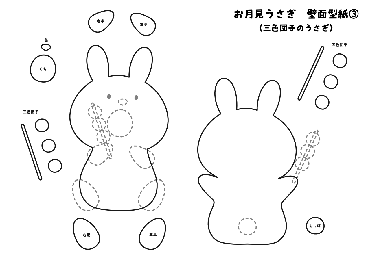 kimie gangi 秋の壁面飾り「十五夜お供えうさぎ」うさぎの型紙付き。