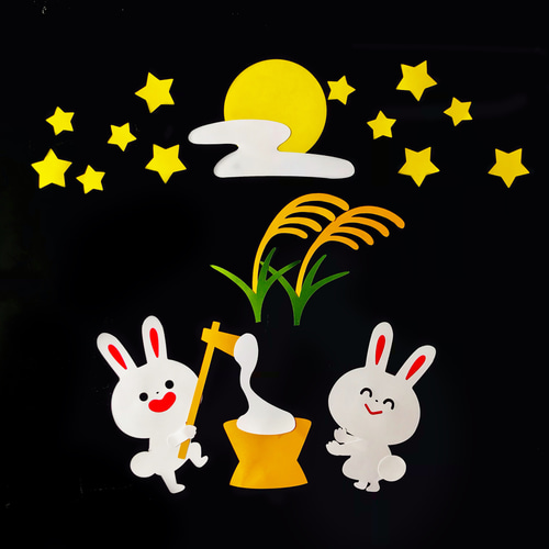 お月見 壁面飾り 9月十五夜☆月見うさぎ 壁面飾り製作素材。