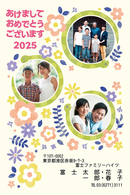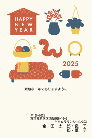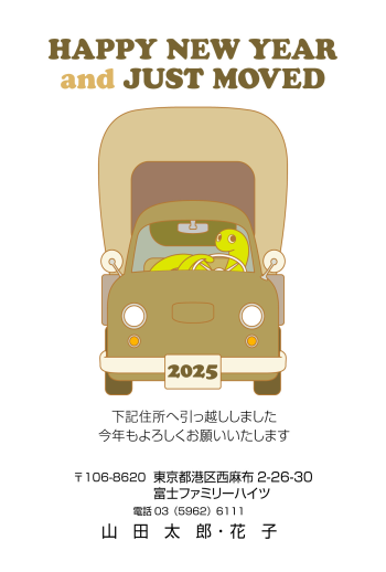 引越報告 イラスト年賀状デザイン一覧カメラのキタムラ年賀状2025巳年。