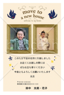 写真入り 幸せの青い鳥の引越報告年賀状bizocean ビズオーシャン。