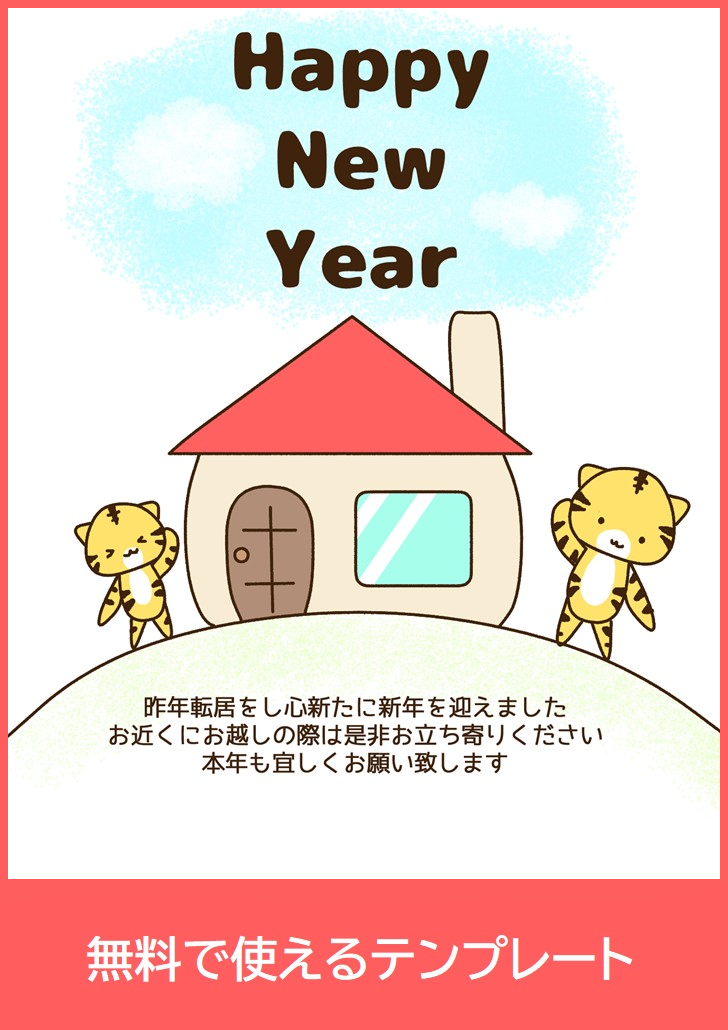 無料のテンプレートで令和4年の年賀状が作れる!寅年に可愛い引っ越し報告を!PDFですぐに簡単印刷!忙しい人に。