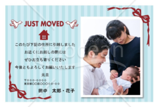 写真入り 鳩とリボンの引越報告年賀状bizocean ビズオーシャン。