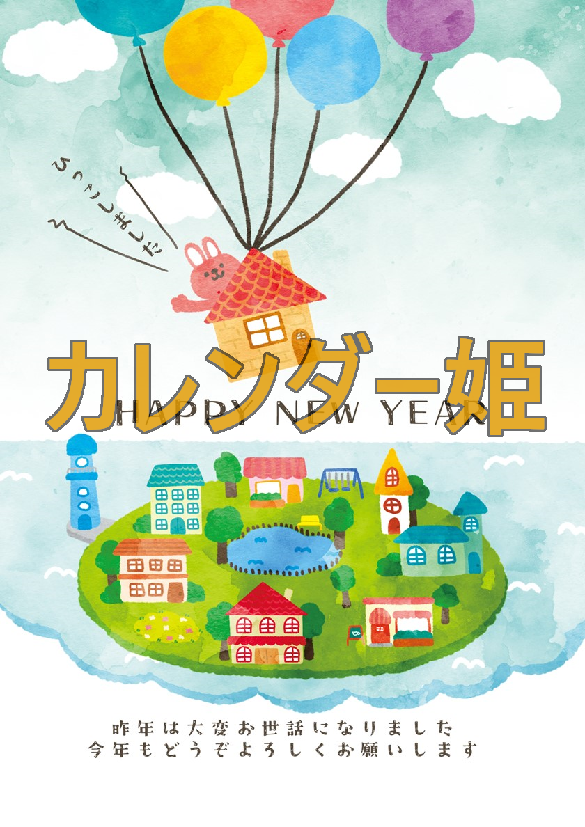 引っ越し報告に!2023年の無料年賀状テンプレートは卯年らしくかわいいカレンダー姫。