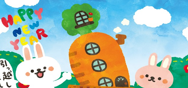 引越し 転居報告ハガキを兼ねた年賀状イラストwanpug素材ブログ。