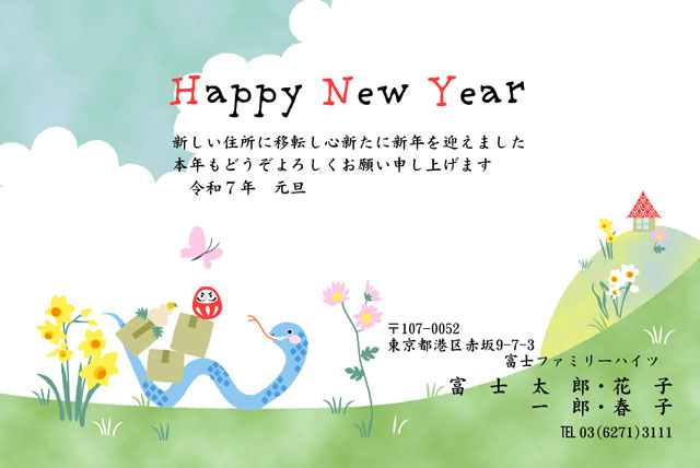 引越しのお知らせ文章付干支のヘビの年賀状のイラスト素材113412323- PIXTA。