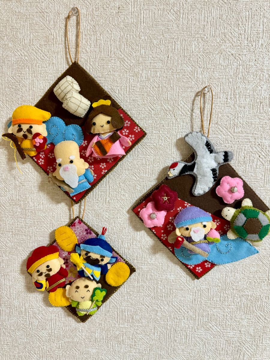 フェルト*ハンドメイド*タペストリー*お正月*七福神*宝船*柴犬*豆柴。