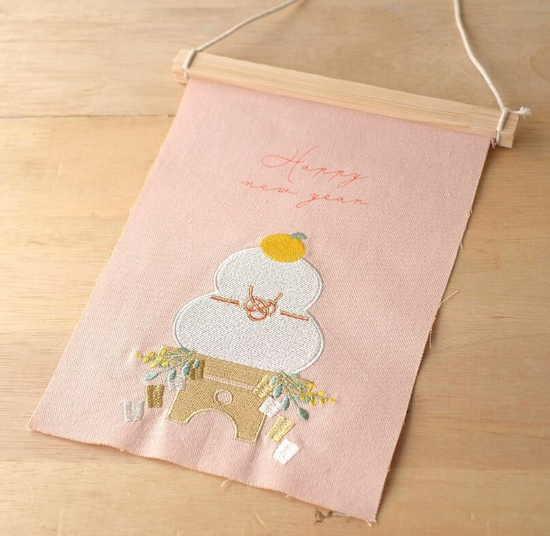 ミニ刺繍タペストリー お正月鏡餅 和テイスト 日本 Japan 飾りつけ 壁 飾り インテリア ナチュラル 撮影 布 Tapestryリトルレモネード。