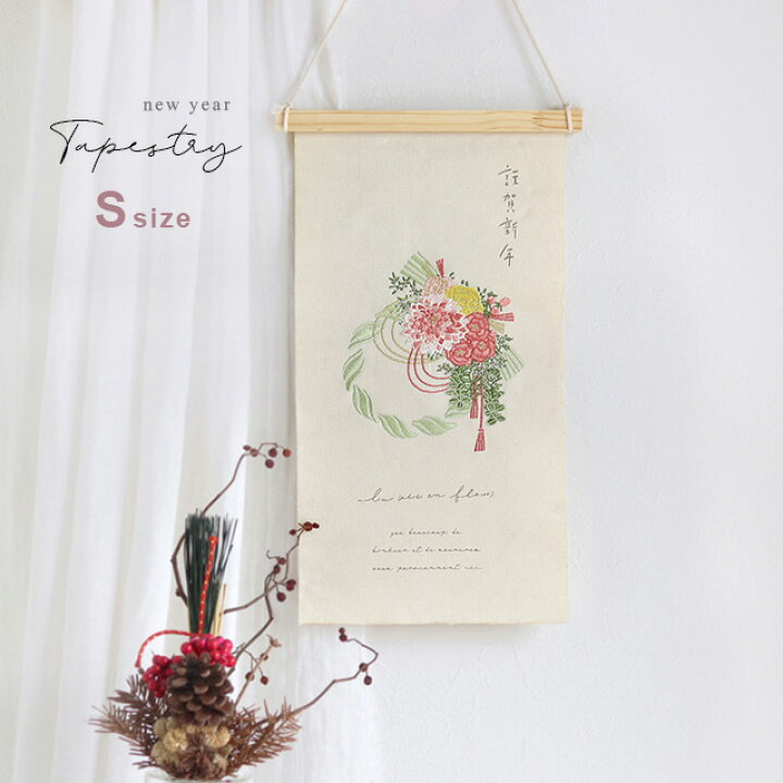 楽天市場 ニューイヤー刺繍タペストリー S お正月 タペストリー おしゃれ ツリー 飾り 布 装飾 壁掛け しめ飾り 記念撮影 写真 子供 男の子女の子 赤ちゃん かざり デコ インテリア 正月飾り 背景布 小さめ かわいい シンプル ナチュラル フォト: FAVRAS ファブラス。