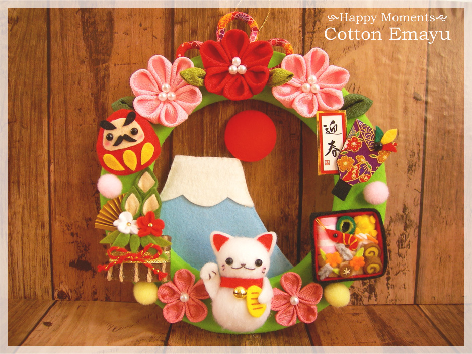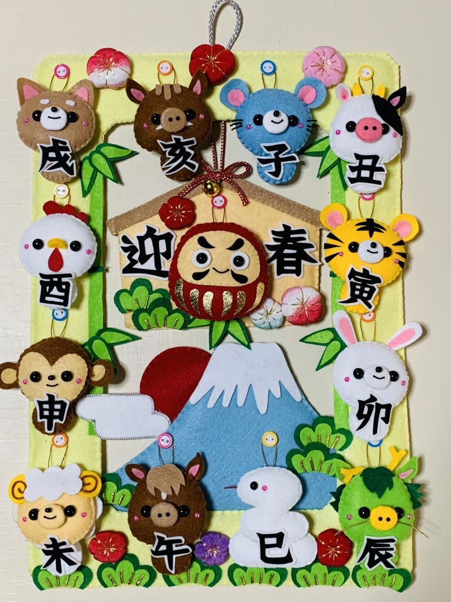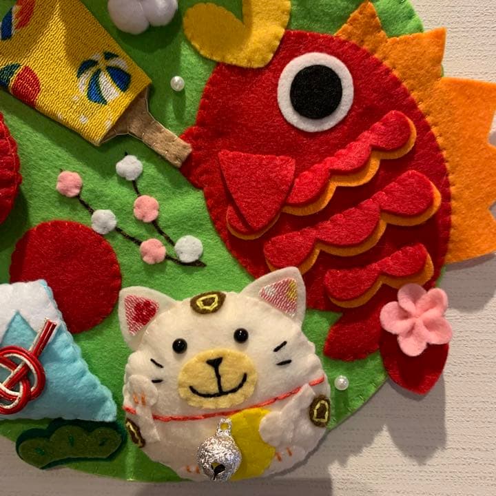 お正月飾り ハンドメイド フェルトリース タペストリー - メルカリ。