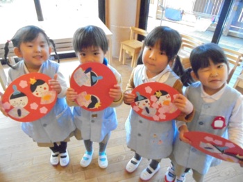 ひな祭り製作 2歳児令和3 2021 年2月15~18日幼稚園型認定こども園 上谷学園 幸幼稚園西宮市 さちようちえん。
