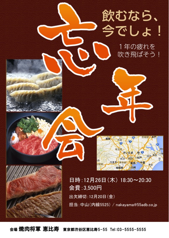 忘年会の案内状、チラシ、ポスターは無料テンプレートで簡単キレイに作ろう! - ハテ?なる。