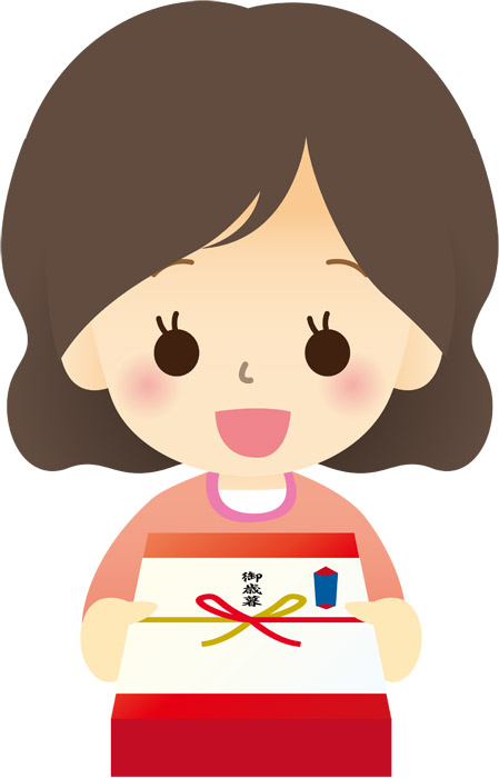 お中元を渡す女性のイラストコピペできる無料イラスト素材展。