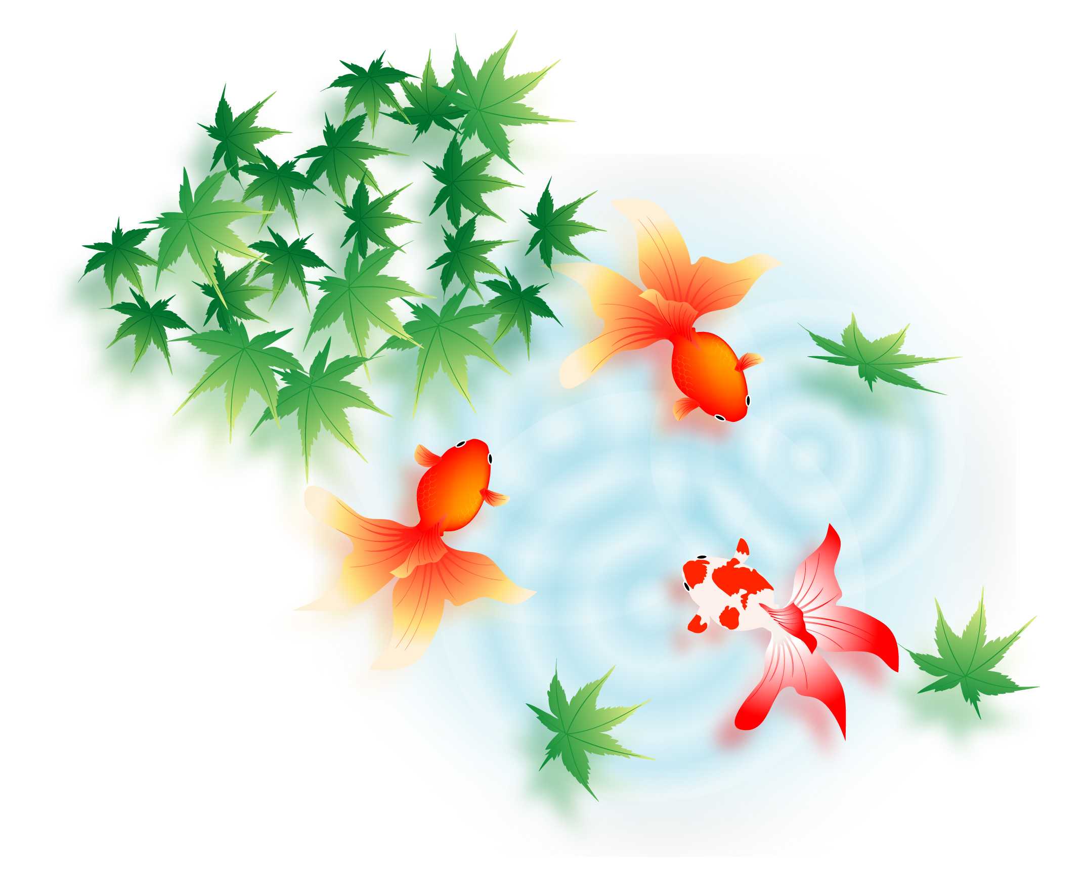 青もみじと金魚の涼し気な暑中見舞いはがき無料イラスト素材素材ラボ。
