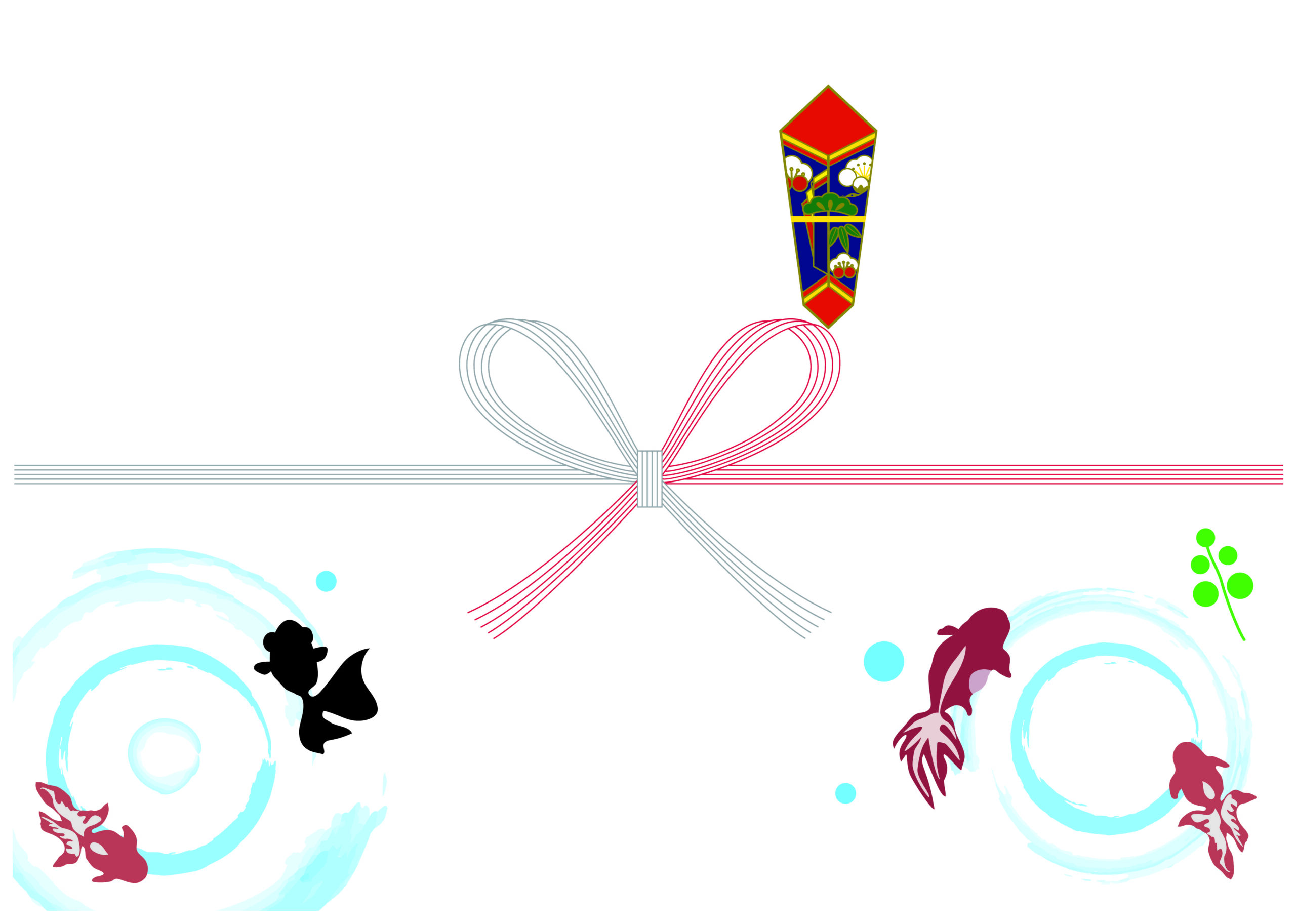 お中元用熨斗 のし テンプレート 紅白の水引とかわいい金魚のイラスト入り・Wordで表 イラストボックス「プレミアム」テンプレート。