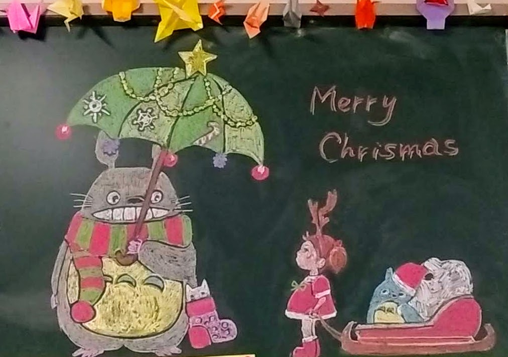 おぎわらピアノ教室 安曇野市穂高 : 黒板アート トトロ クリスマス。