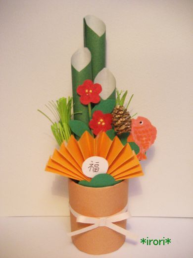 折り紙★お正月 門松 かどまつ の折り方 ◇Origami Kadomatsu 簡単 可愛い 正月飾り 冬 竹 扇 梅の花◇。