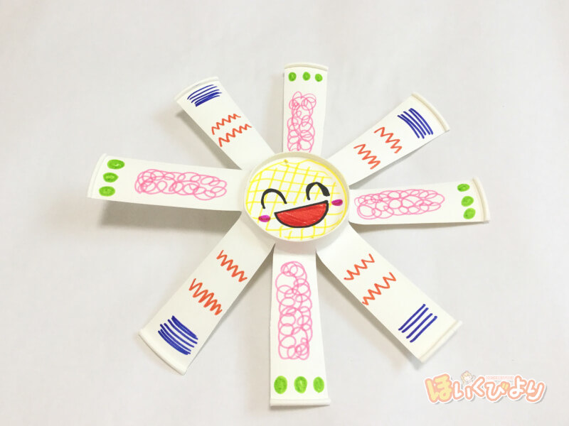 紙コップで簡単♪太陽みたいなコマほいくびより。