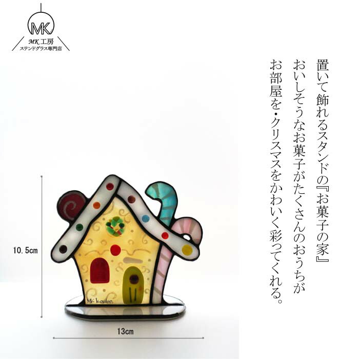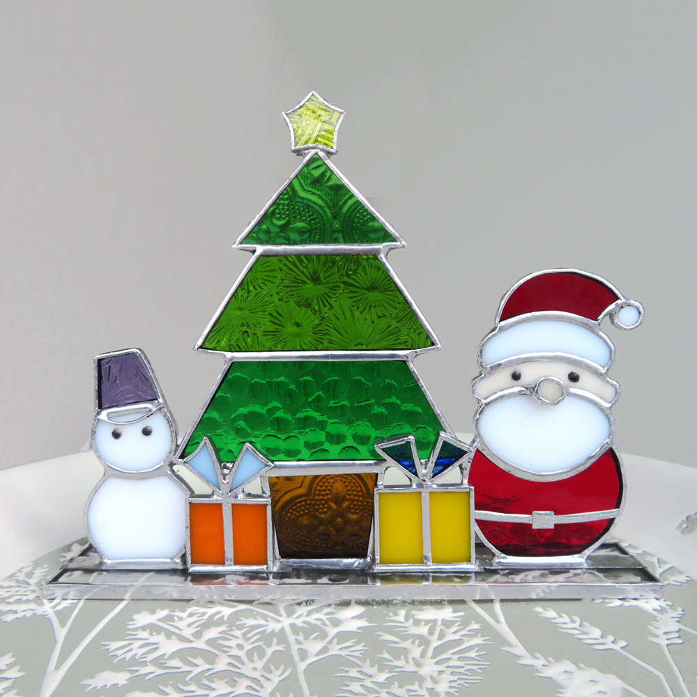 ステンドグラス クリスマス 飾り 玄関 雑貨 ツリー サンタクロース お菓子の家 ツリーサンタ ハウス プレゼント オブジェ ガラス おしゃれかわいい ガラス細工 手作り ハンドメイド インテリア ギフト 贈り物 作家 ステンドグラス スタンド付オーナメント クリスマス。