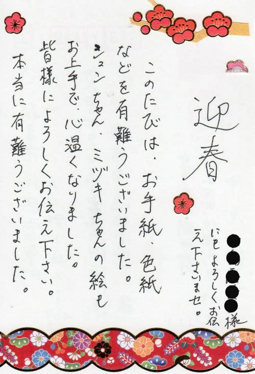 誕生日手紙のお礼状を受け取りました- 5- 災害支援ボランティア 宮北会 みやきたかい。