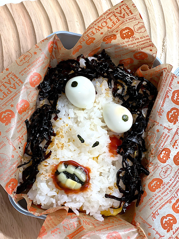 MORNING BREEZE FM AICHIon X: "ハッピーハロウィン弁当🎃👻🍙 貞子さんのホラー弁当!こわい!けどすごい!けどこわい! こだわりがつまってますね、、ブリーズ807FMAICHI https:t.co mZc2PeaK6l"X。