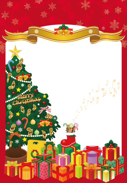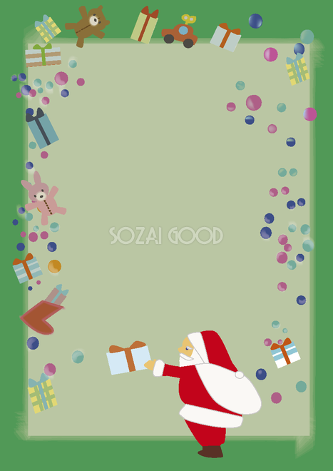 クリスマスプレゼントのフレーム枠 縦の無料イラスト59301素材Good。