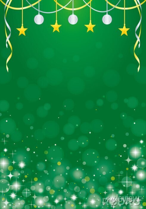 キラキラクリスマス背景 緑の縦型。