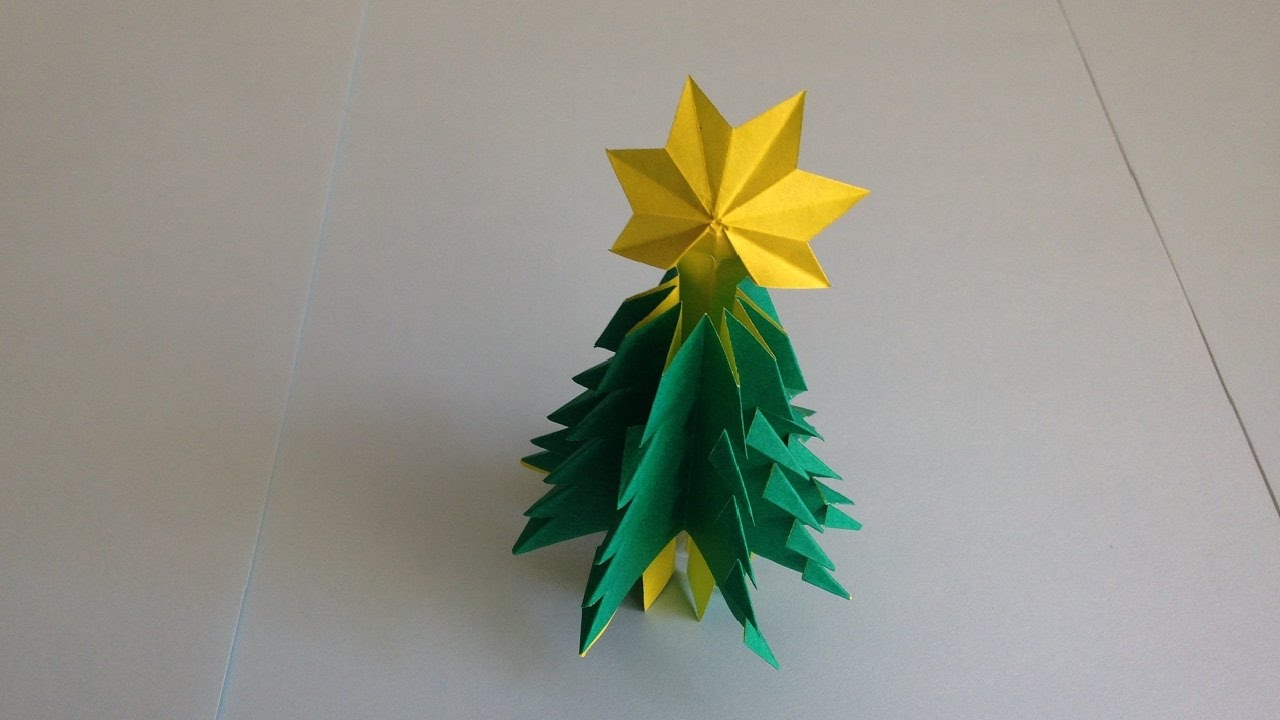 簡単•折り紙 立体☆1枚でできる星付きクリスマスツリーの作り方。