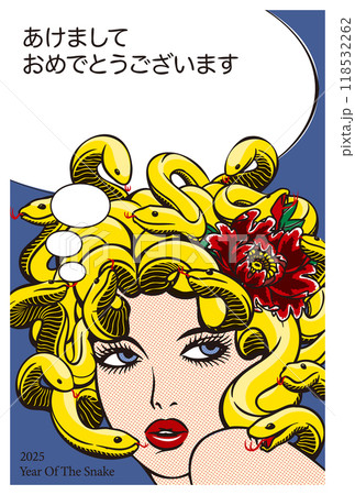 2025年賀状テンプレート「POPアート風デザイン」あけおめ 手書き用スペース付パターンのイラスト素材118532262- PIXTA。