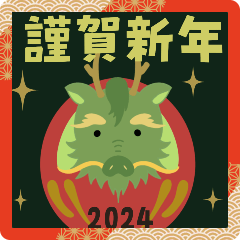 令和六年 スタンプ 2024年賀状素材:イラスト無料。