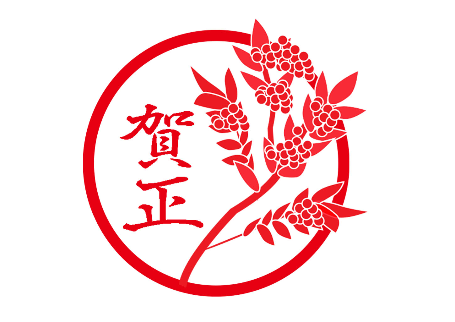 謹賀新年☆手彫り風はんこスタンプ年賀状フリー素材イラスト。