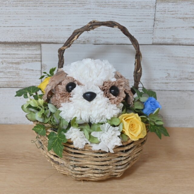 壁掛け シーズー 2way プリザーブドフラワー カーネーション 母の日 犬 花 フラワーアレンジメントiichi 日々の 暮らしを心地よくするハンドメイドやアンティークのマーケットプレイス。