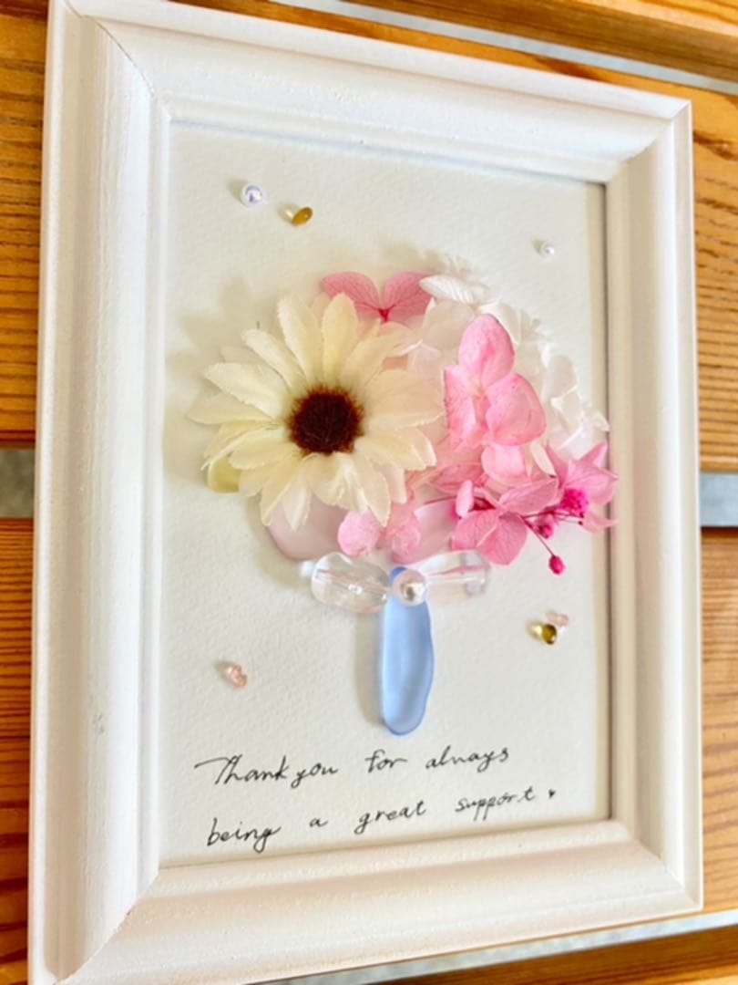 花束**シーグラスアートフラワー壁掛け母の日のプレゼントリボンアネモネ。